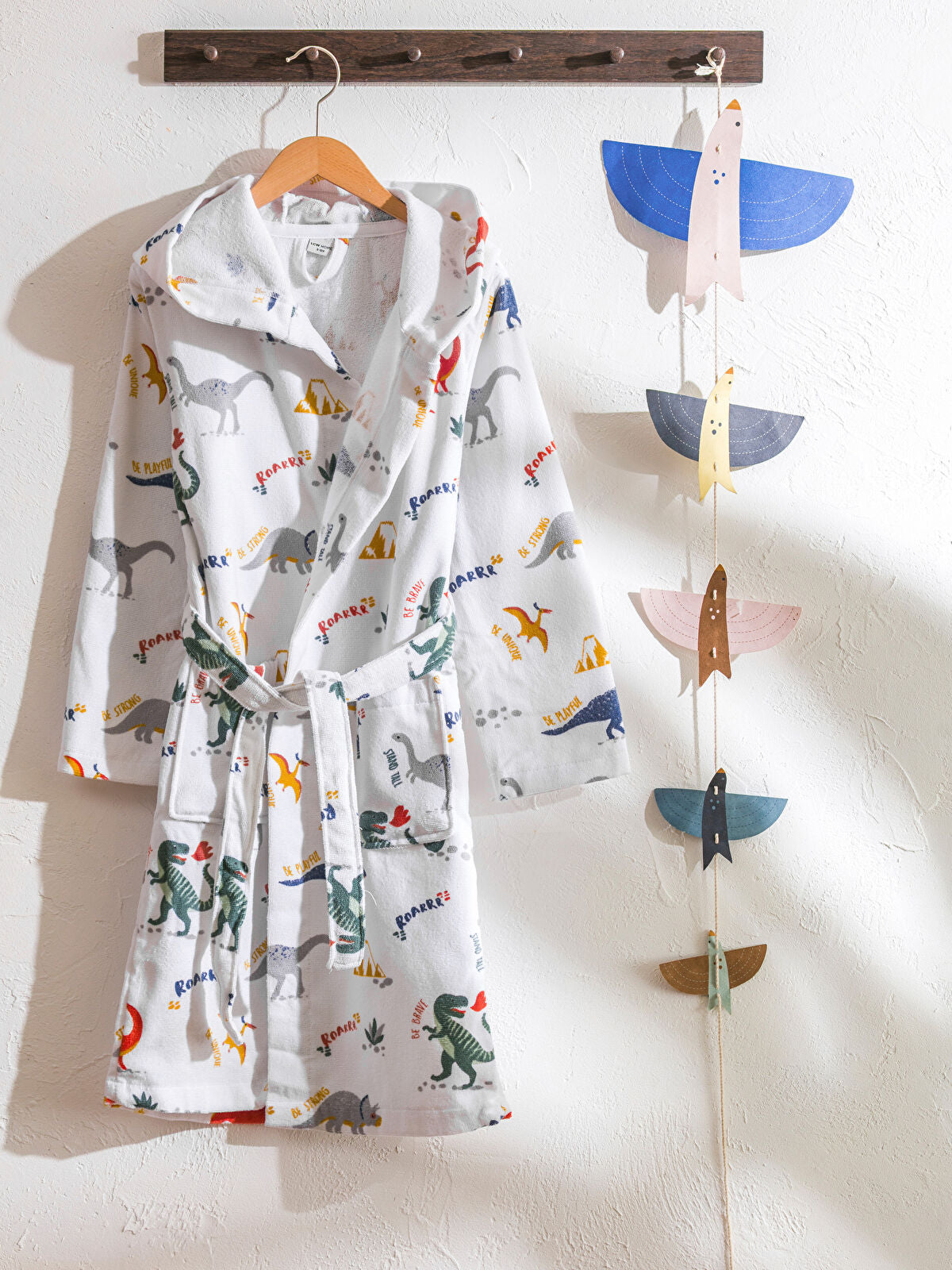 Dinosaur Embroidered Girls Child Robe