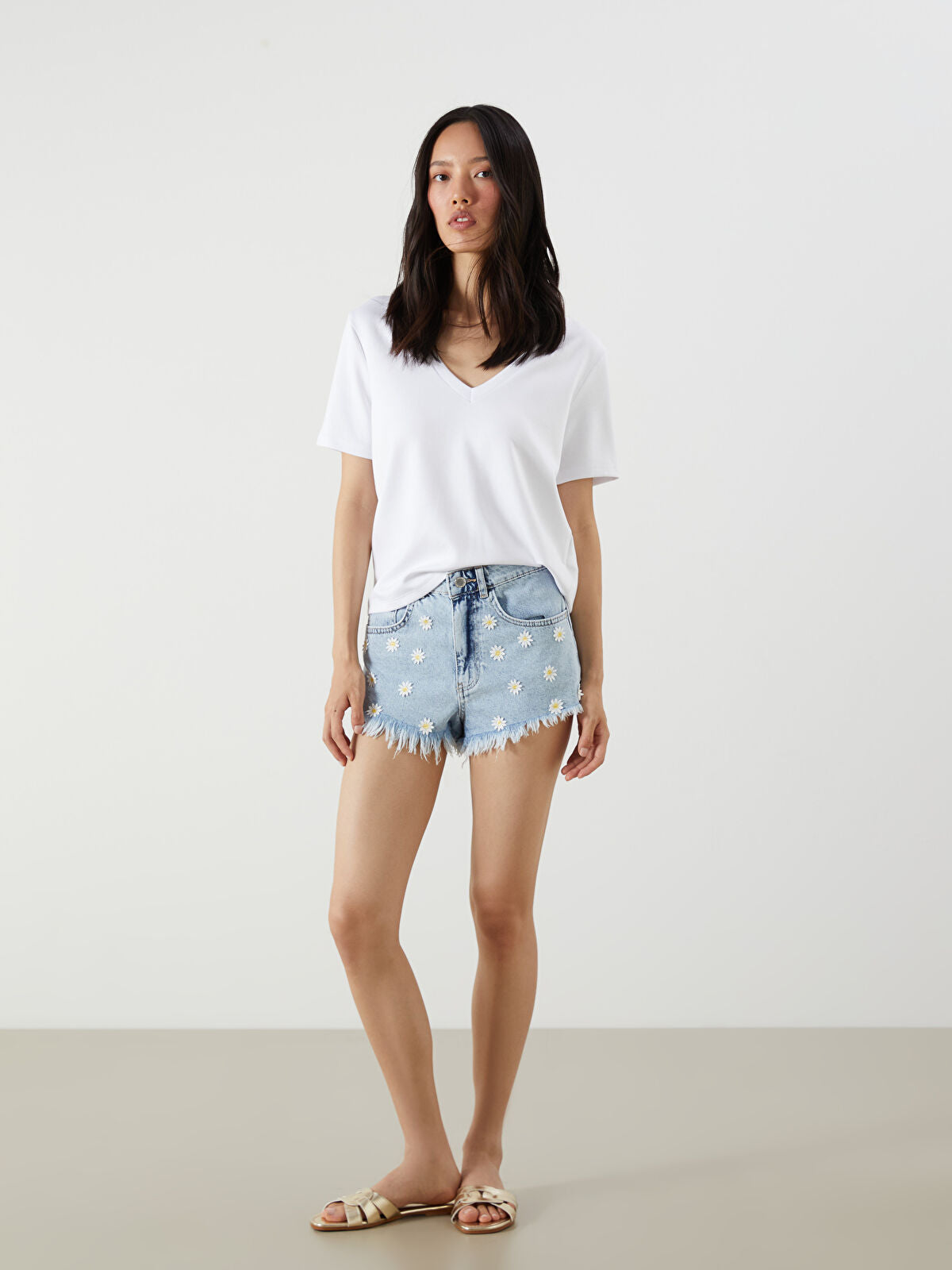 Standard Fit Flower Embroidery Women's Jeans Shorts